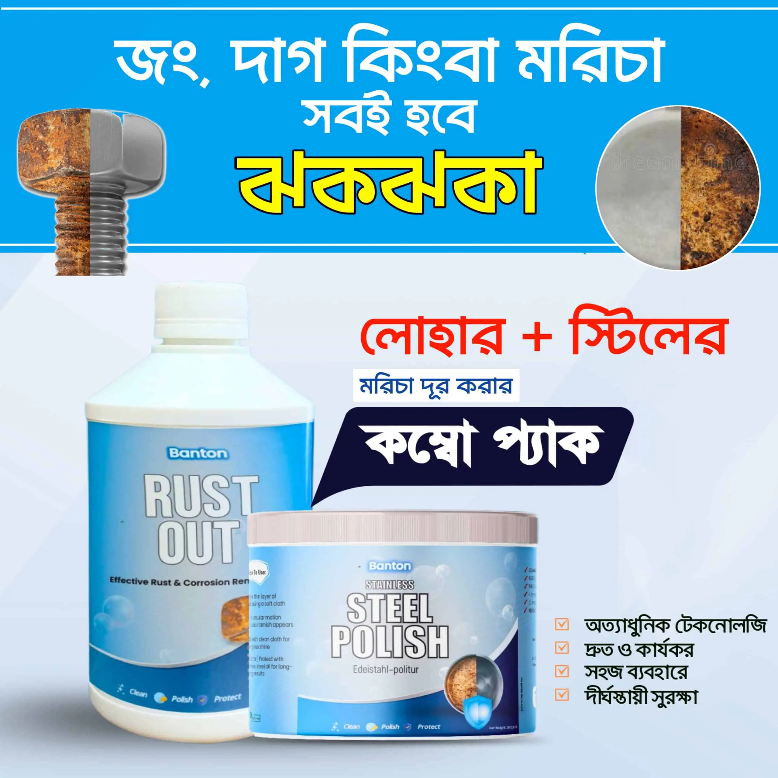 লোহা + স্টিলের জং দূর করার কম্ব। Rust Out + Steel Polish
